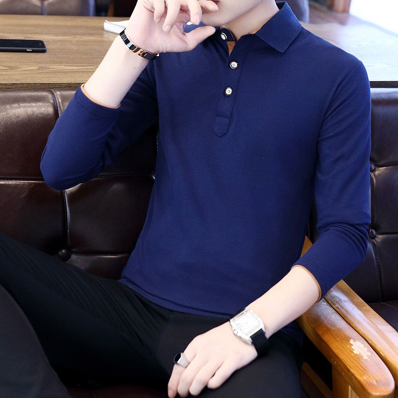 Men's Long Sleeve Business Plus Size POLO Shirt Grey XXL