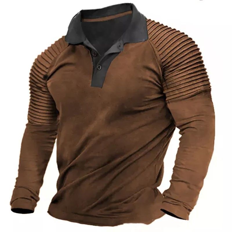 Men's Long Sleeve Button Printing Leisure Pullover Polo Shirt WTC519 5XL