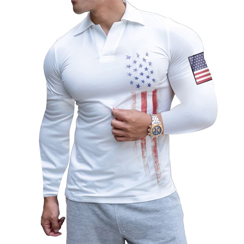 Men's Long Sleeve Button Printing Leisure Pullover Polo Shirt WTC96 XL