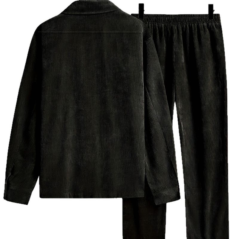 Men's Long Sleeve Lapel Shirt Trousers Suit Navy Blue M