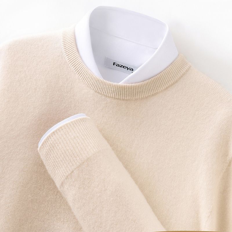 Men's Long Sleeve Pullover Business Casual Sweater Autumn And Winter Wild Thickened Snow Township White 2XL
