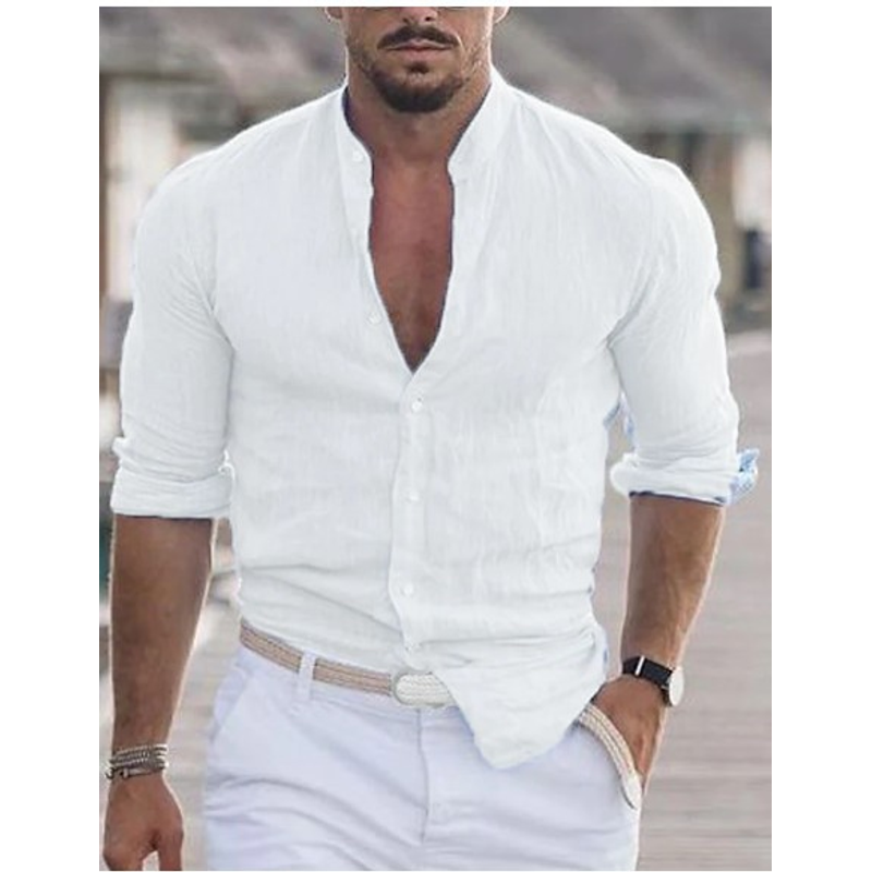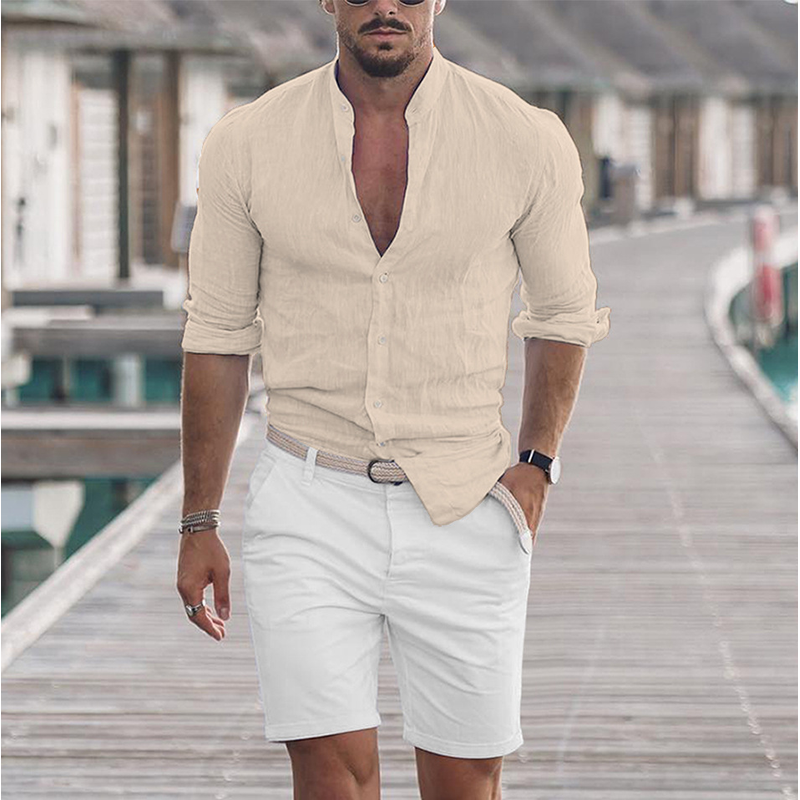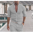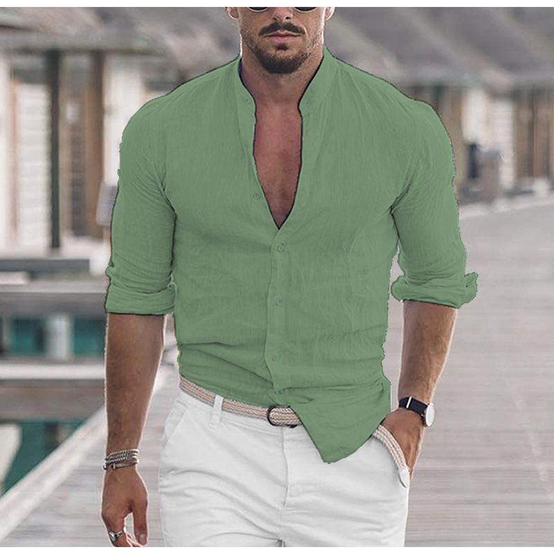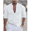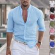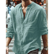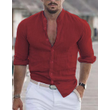 Men's Long Sleeve Shirt With Button Casual Solid Color Tops For Spring Autumn Gray S