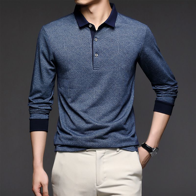 Men's Long Sleeve T-Shirt Lapel Loose Polo Shirt Blue 2XL