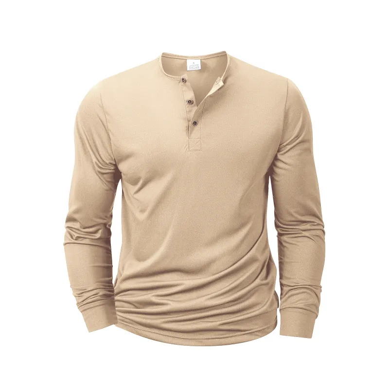 Men's Long Sleeved Henley Neck T-shirt Slim Fit Bottoming Shirt Fitness Tops Tees Button Neck Casual Cozy Tshirt