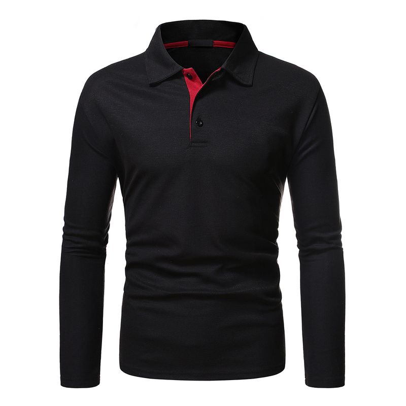Men's Long-sleeved Slim Casual Polo Shirt Black XL