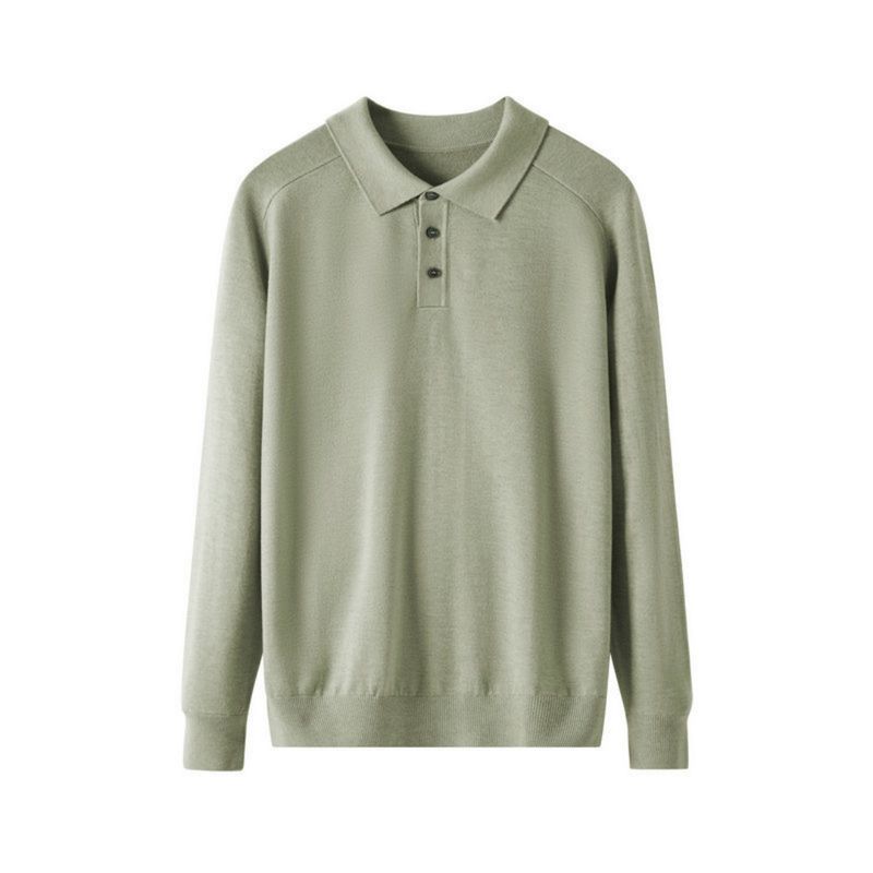 Men's Long-sleeved Sweater Lapel Comfortable All-match Khaki Green 2XL