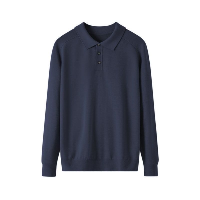 Men's Long-sleeved Sweater Lapel Comfortable All-match Navy Blue XL