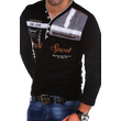 Men's Long-Sleeved T-Shirt Fashion Personality V-Neck Short-Sleeved Polo Shirt black L