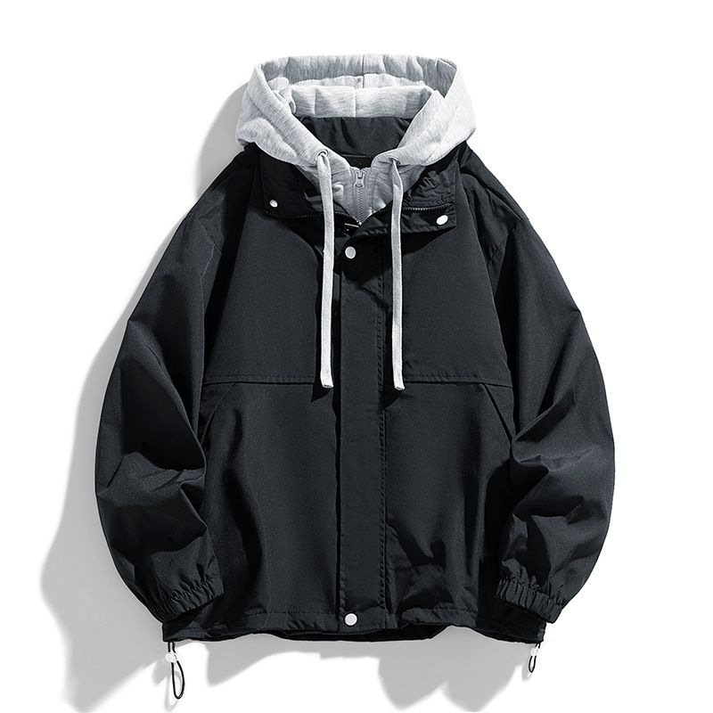 Men's Loose Fashion Casual Easy Matching Coat Black With Gray Cap M