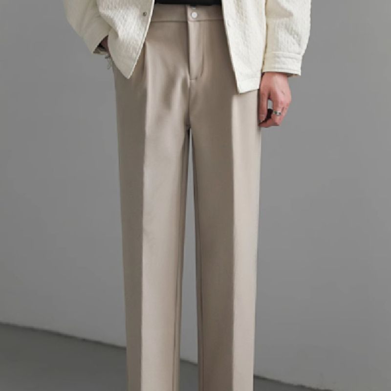 Men's Loose Straight Trousers Korean Style Trendy Suit Trousers Apricot 2XL