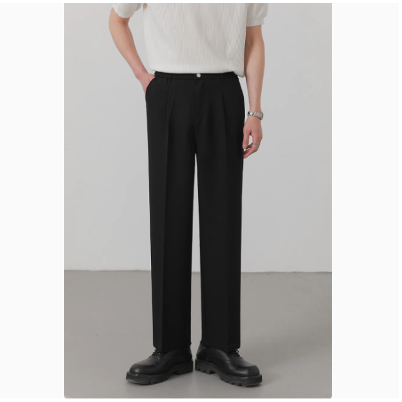 Men's Loose Straight Trousers Korean Style Trendy Suit Trousers Black XL