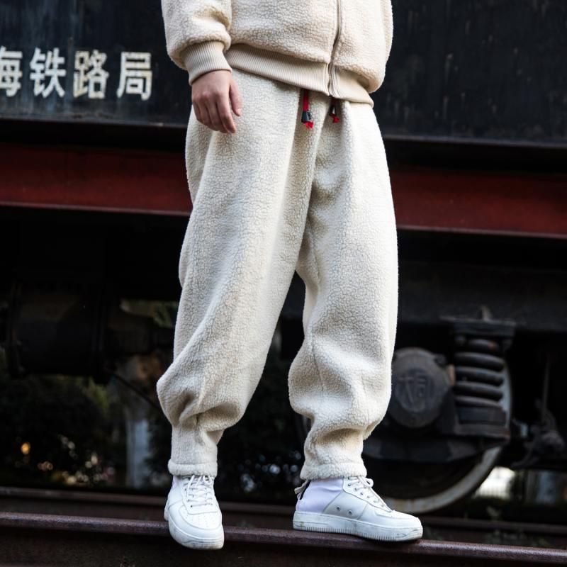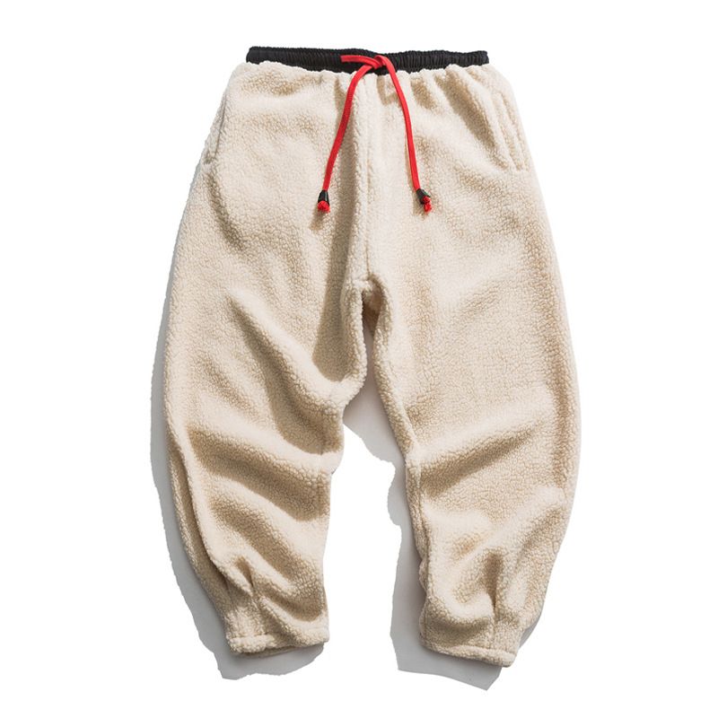 Men's Loose Warm Thick Lamb Wool Pants Army Green 2XL
