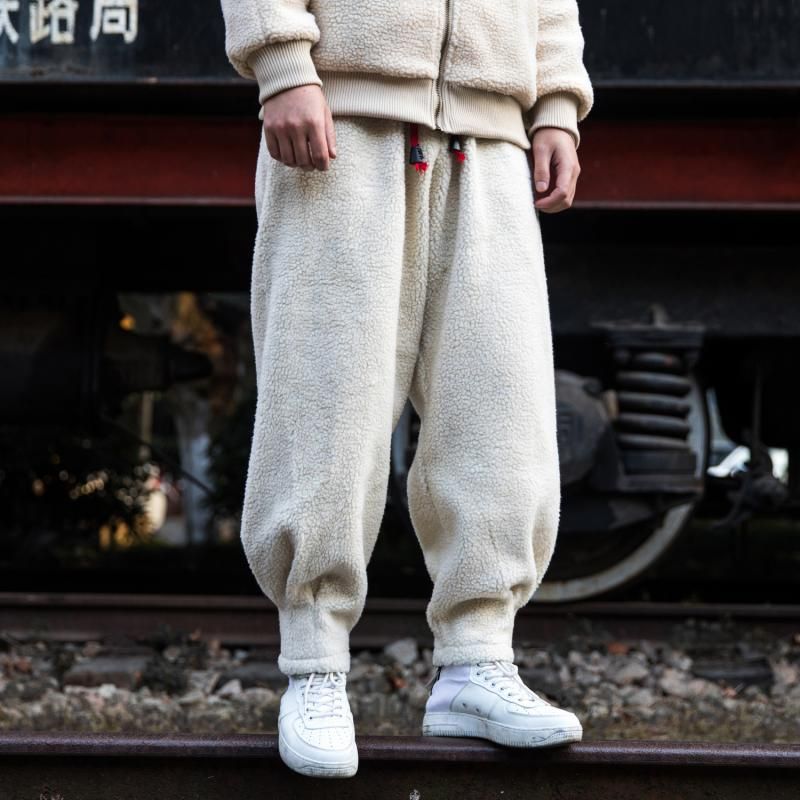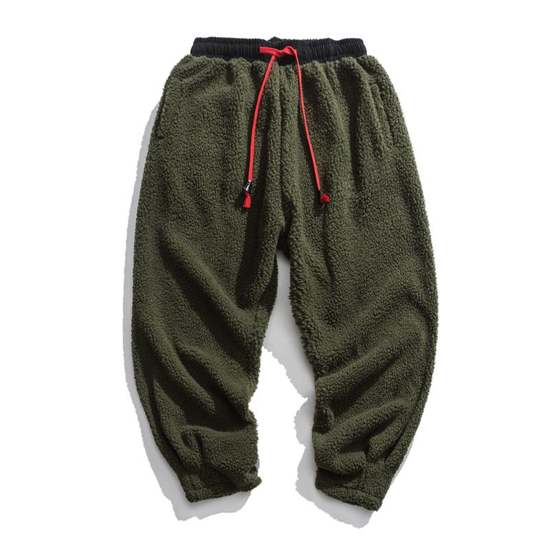 Men's Loose Warm Thick Lamb Wool Pants Army Green 4XL