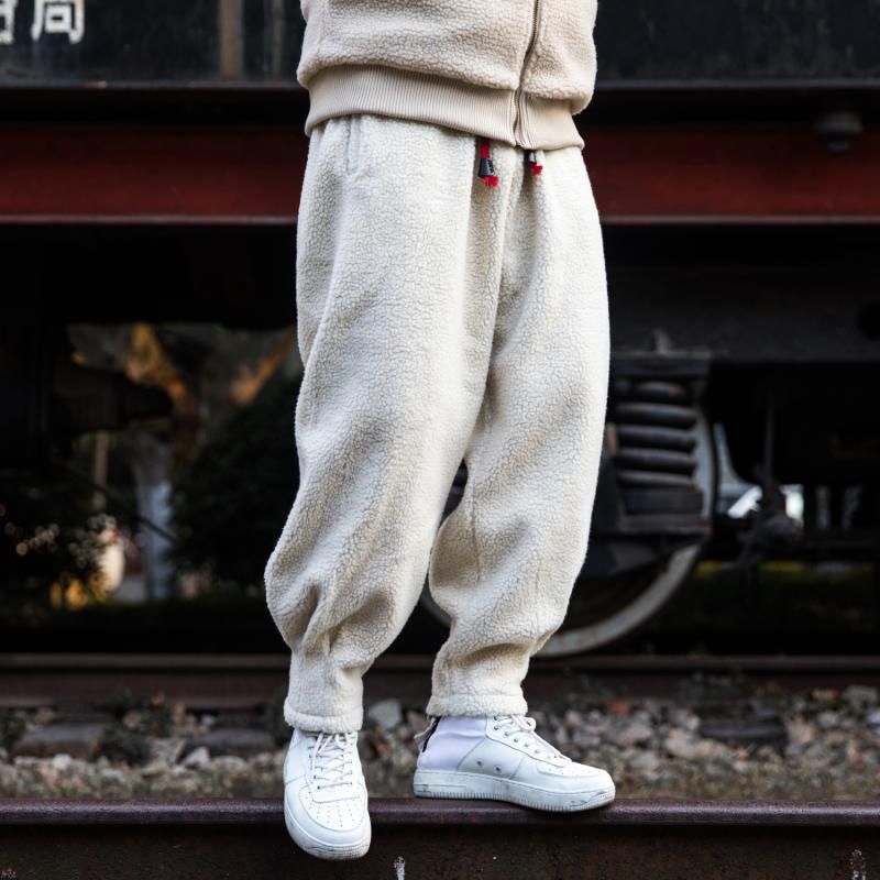 Men's Loose Warm Thick Lamb Wool Pants Army Green M