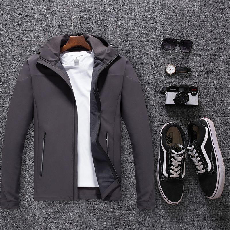 Men's movement in the spring and autumn season, men's single layer elastic mountaineering jackets, waterproof, windproof, breathable and caprant riding clothes