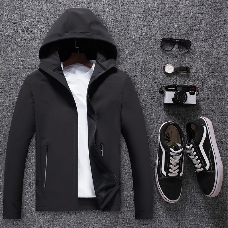 Men's movement in the spring and autumn season, men's single layer elastic mountaineering jackets, waterproof, windproof, breathable and caprant riding clothes Black XXXXXL