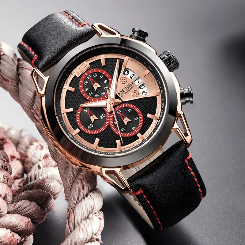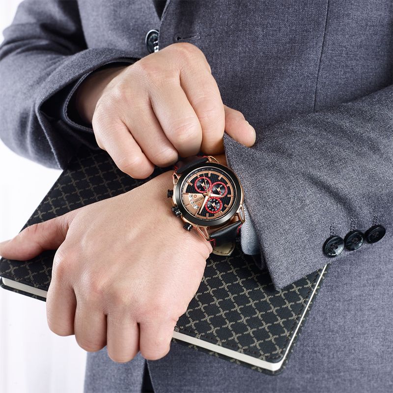 Men's Multifunctional Waterproof Luminous Watch Quartz Black brown One size
