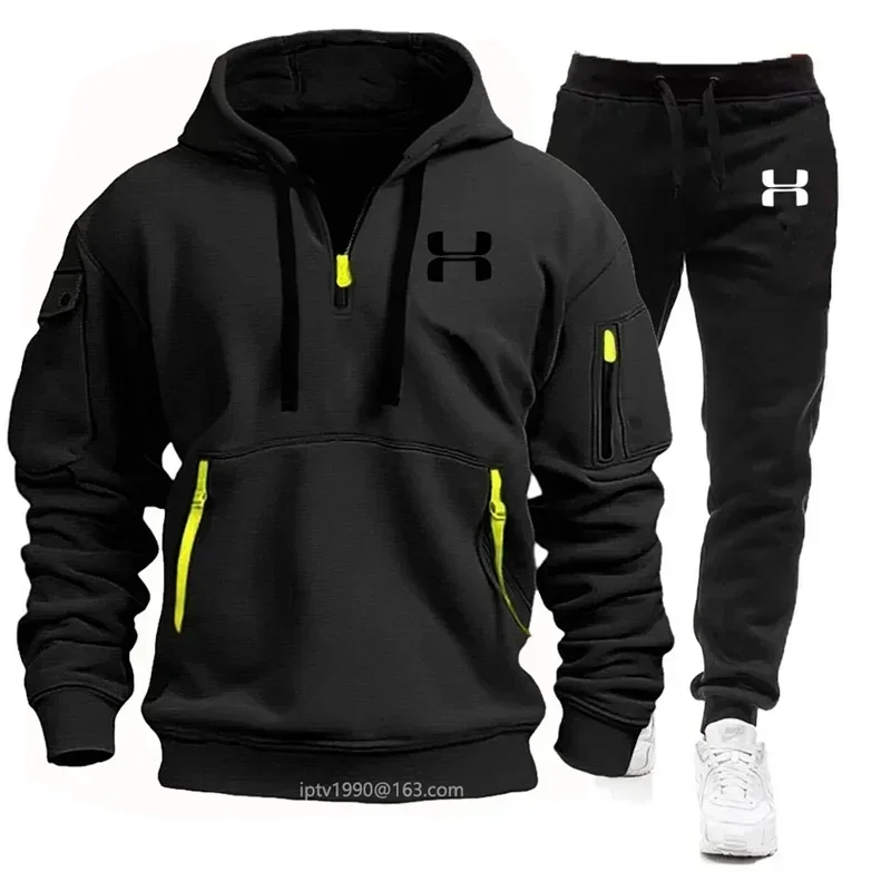 Men's New Autumn and Winter Multi-pocket Zipper Long-sleeved Hoodie + Sports and Leisure Pants Two-piece Fitness Jogging Suit