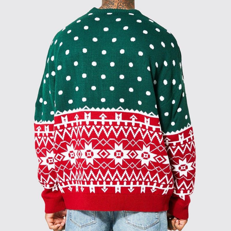 Men's New Fashion Knitted Jacquard Loose Round Neck Pullover Sweater For Autumn And Winter And Christmas White 2XL