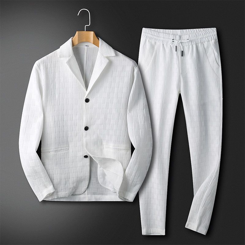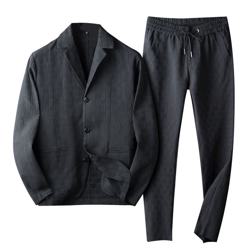 Men's New Light Luxury Dark Pattern Pleated Casual Suit Black 2XL