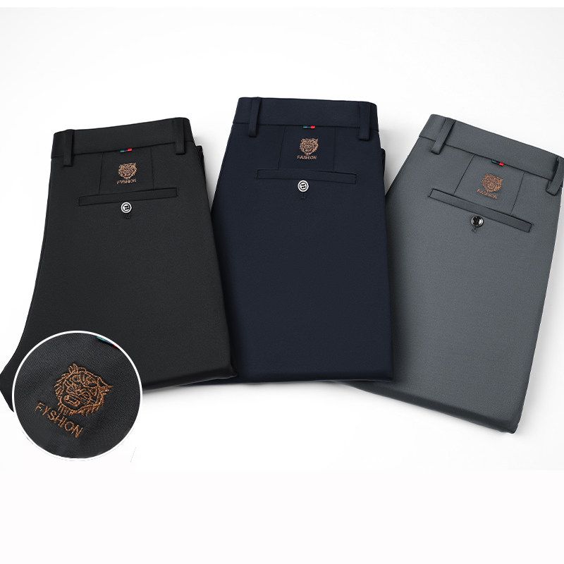 Men's New Loose Straight Leg Elastic Formal Pants, Business Tiger Head Western Style, All Seasons, Casual & Formal Wear