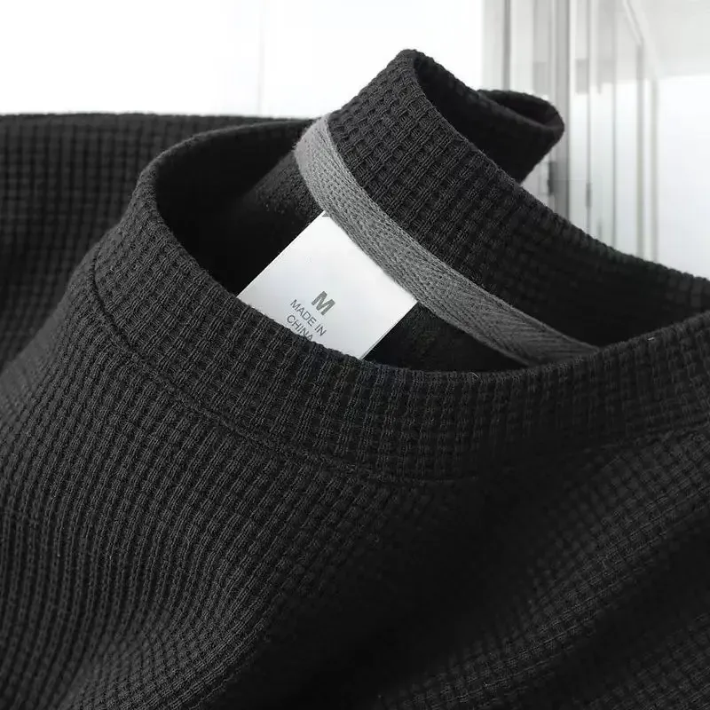 Men's New Summer Waffle Round Neck Short Sleeve T-Shirt Comfortable Breathable Short-Sleeved Top for Casual Wear