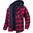 Men's Plaid Hooded Coat Winter Warm Button Zip-up Jacket Fashion Casual Thick Padded Long Sleeves Outerwear Clothing Red 2XL