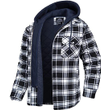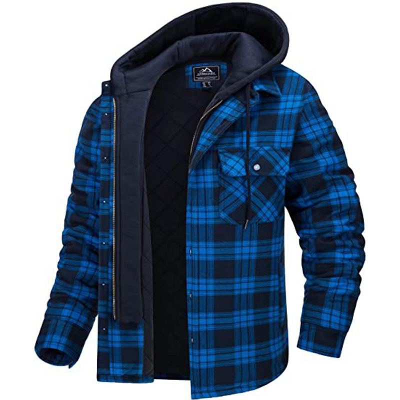 Men's Plaid Hooded Coat Winter Warm Button Zip-up Jacket Fashion Casual Thick Padded Long Sleeves Outerwear Clothing Sky blue grid M