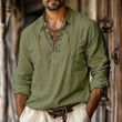 Men's Plus Size Lapels Lace Shirt Solid Color Linen Loose Long Sleeve Shirt Green XXXL