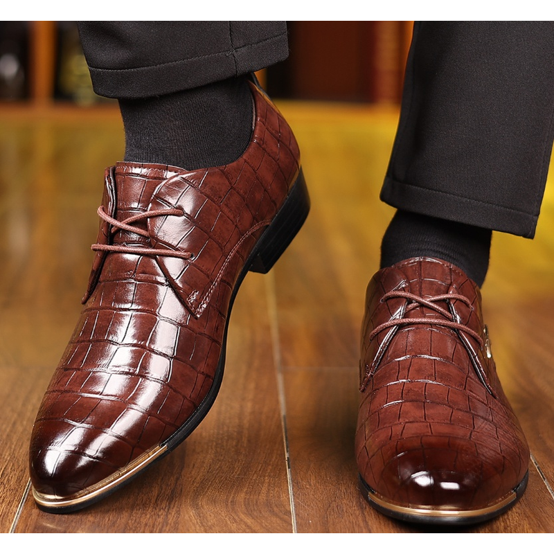 Men's Plus Size Leather Shoes Pointed-toe Fashion Business Formal Men's Shoes Barber Shoes Light Brown 39