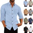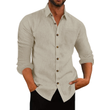 Men's Polo Collar Solid Color Long Sleeve Shirt Linen Loose Casual Cardigan Khaki XXL