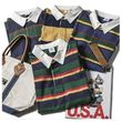 Men's Polo Collar Stripes T-shirt Retro Long Sleeve Green M