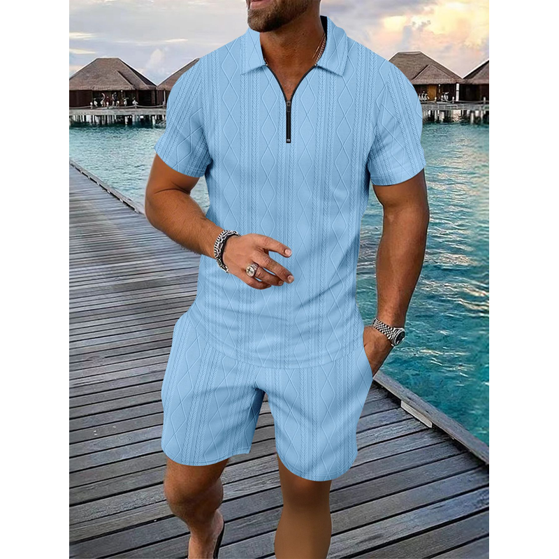 Men's Polo Shirt Casual Short-sleeved Shorts Sports Suit Blue XXXL
