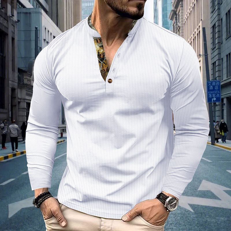 Men's Polo Shirt Double-layer Stand Collar Long Sleeve White XXL