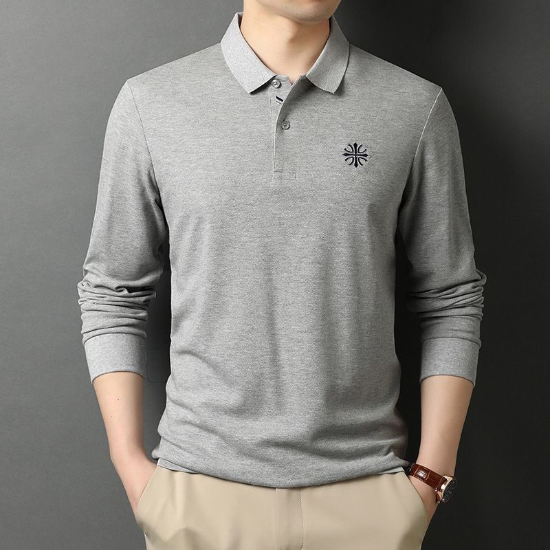 Men's Polo Shirt Korean Version Lapel Embroidery Long Sleeves Grey 2XL