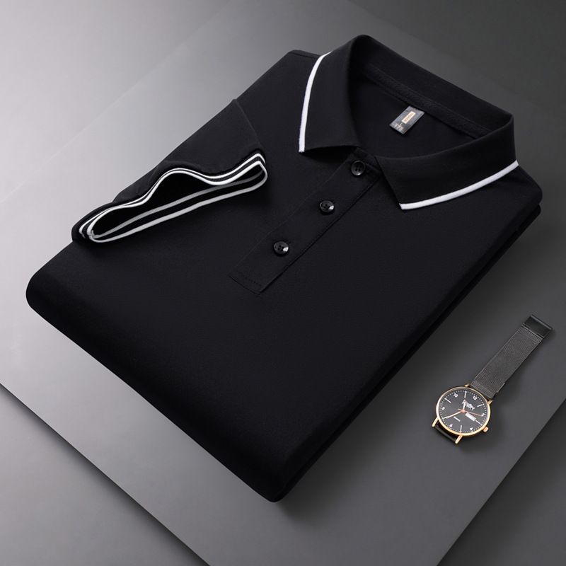 Men's Polo Shirt Lapel T-shirt Summer Short Sleeve Black 4XL