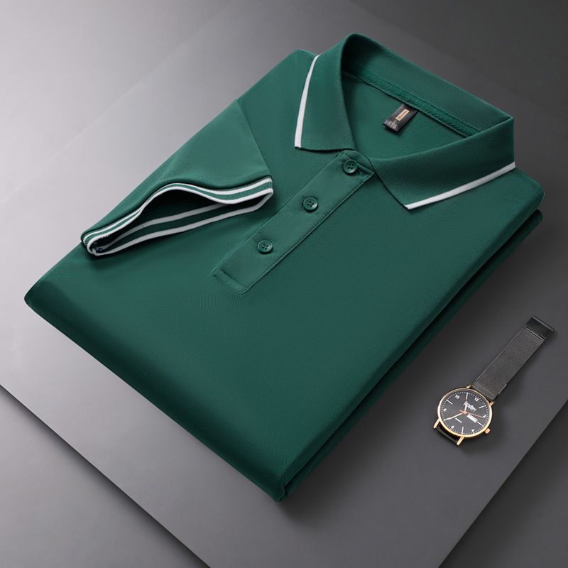 Men's Polo Shirt Lapel T-shirt Summer Short Sleeve Navy Blue 2XL