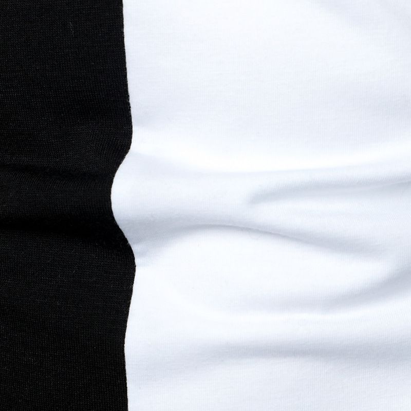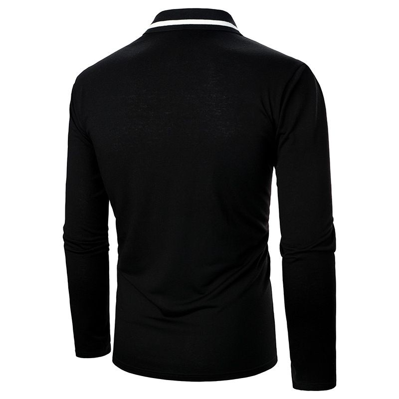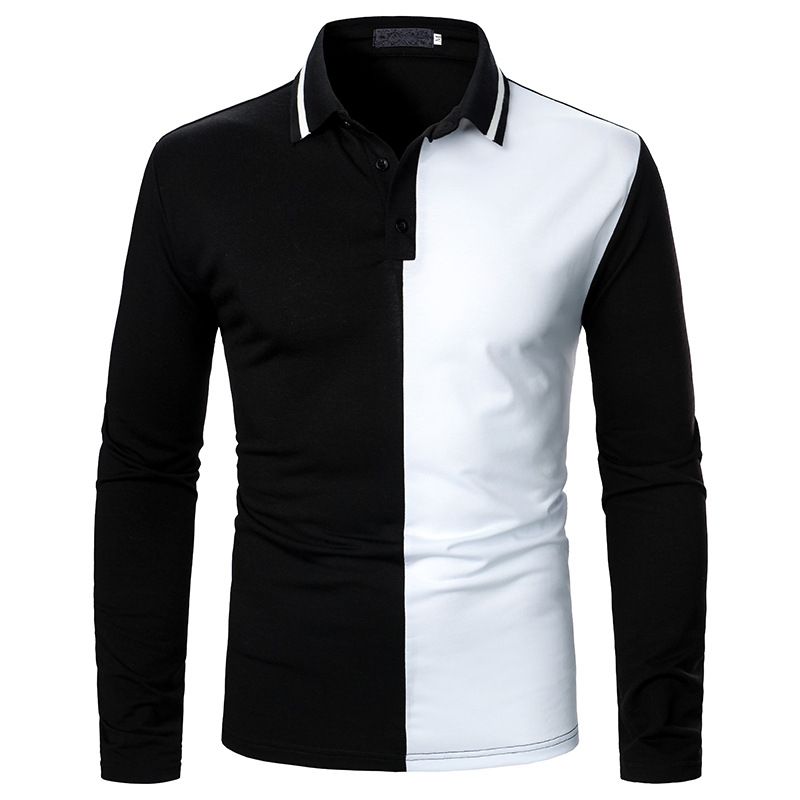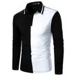 Men's POLO Shirt Two-color Stitching Fashion Men's Long Sleeves Black white 2XL