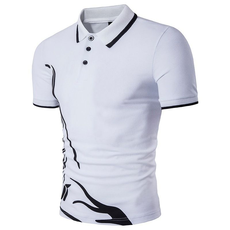 Men's Printed Lapel Polo Shirt Short Sleeves White XL