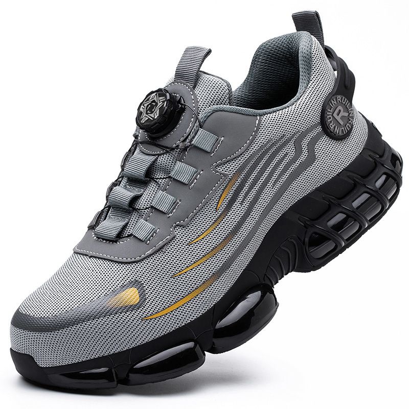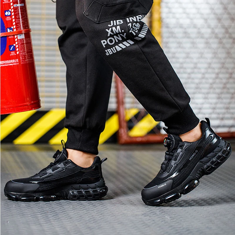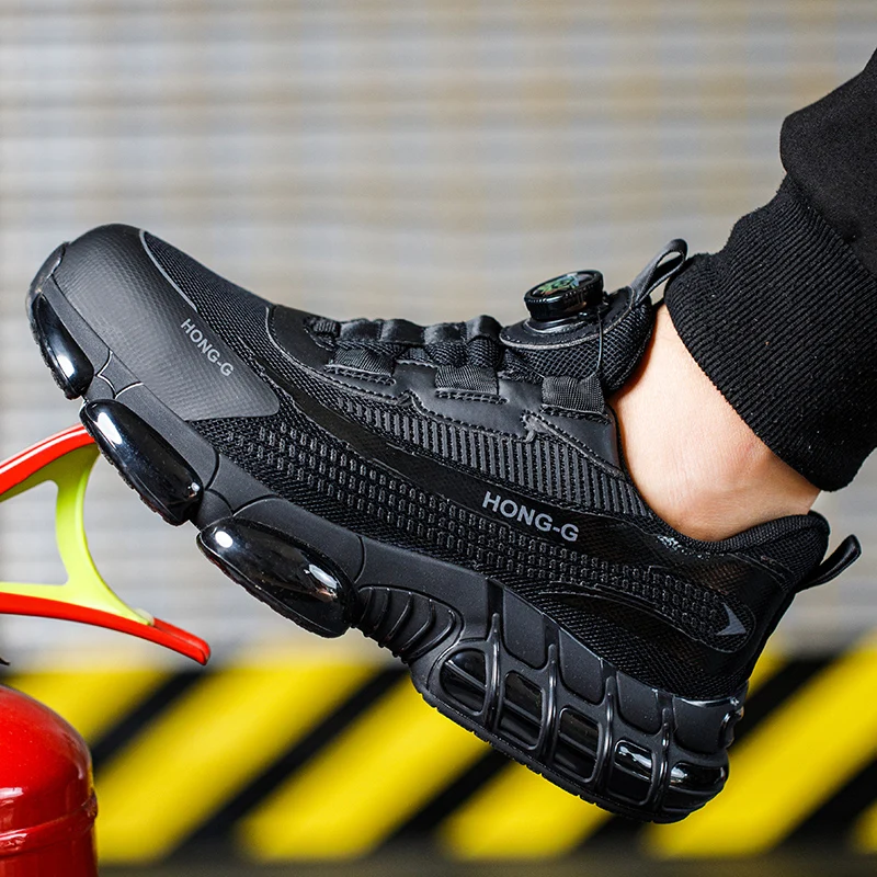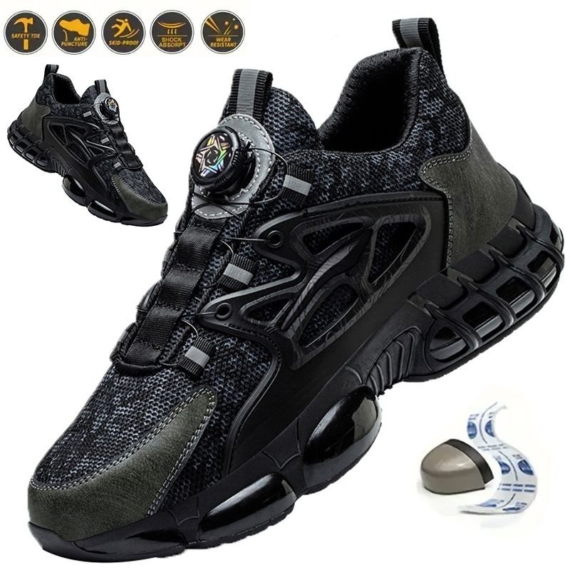 Super light safety shoe:It is like the weight of a pair of running shoes. They can help you to work happily all day without exhausting your feet. With super soft insoles and High elastic sole, your feet are safe and comfortable. Flying knit upper is very soft, Keep your feet comfortable and breathable.