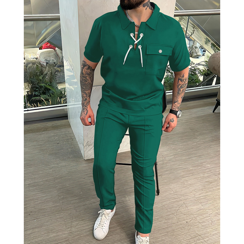 Men's Shirt Casual T-shirt Short Sleeve Trousers Green S