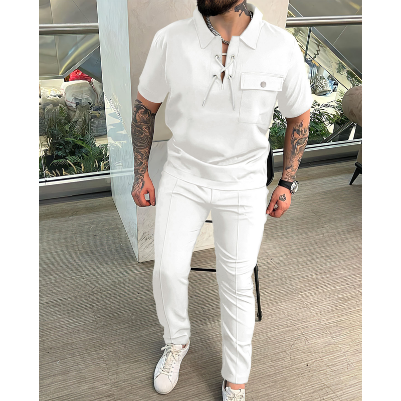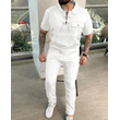 Men's Shirt Casual T-shirt Short Sleeve Trousers White L