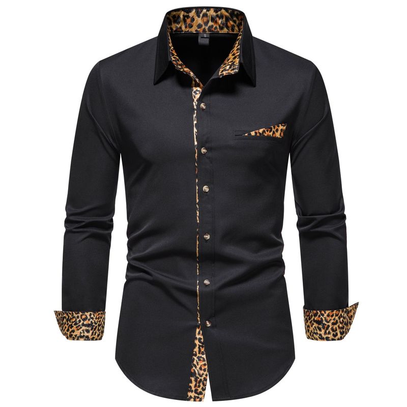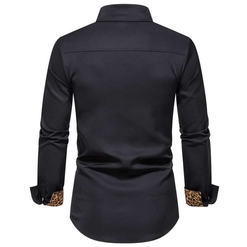 Men's Shirt Color Matching Long Sleeve Clothing Black L