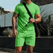 Men's Short Sleeve Shorts Casual Suit Summer Waffle Solid Color Casual Loose Lapels T-shirt Suit Men Fruit Green 3XL