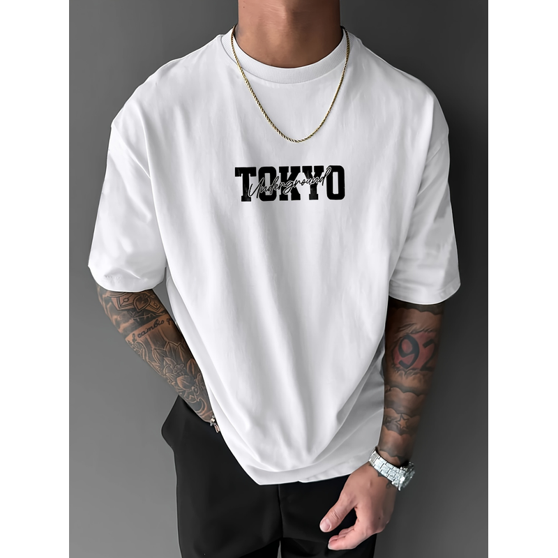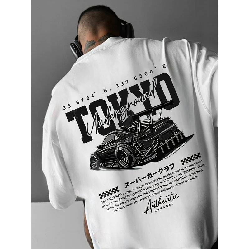 Men's short-sleeved t-shirt, printed with racing cars English graphics loose fit fashionable casual round neck top spring summer