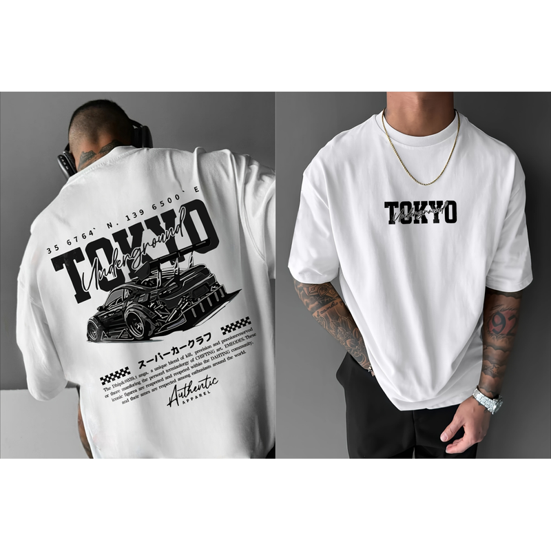 Men's short-sleeved t-shirt, printed with racing cars English graphics loose fit fashionable casual round neck top spring summer