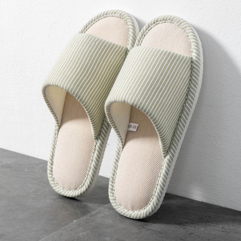 Men's Slip-Resistant Linen Slippers - Breathable Soft Sole House Shoes for Indoor Use, Non-Slip Stripe Design with Open Toe