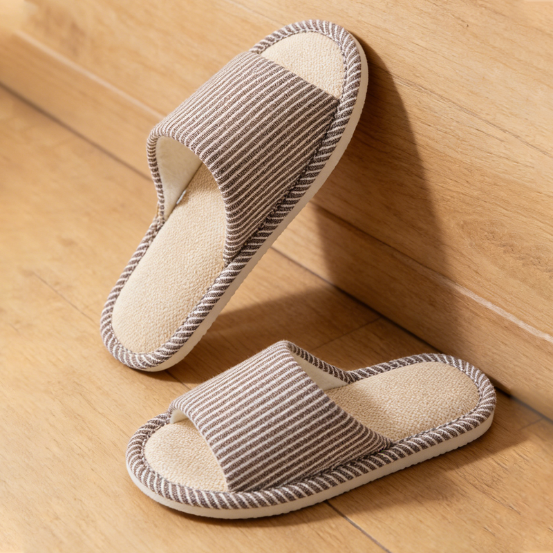 Men's Slip-Resistant Linen Slippers - Breathable Soft Sole House Shoes for Indoor Use, Non-Slip Stripe Design with Open Toe