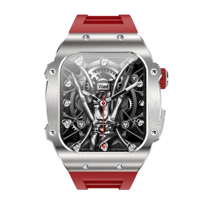 Men's Smart Watch Waterproof All-day Monitoring White Frame Red Strap