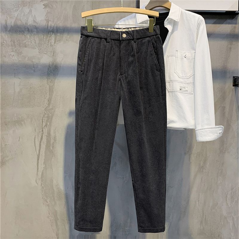 Men's Solid Color Corduroy Warm Casual Pants Dark Gray 31